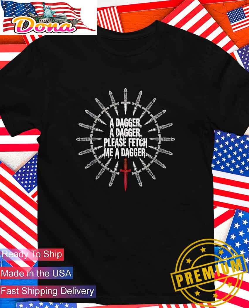 A dagger a dagger please fetch me a dagger T-Shirt available sizes for youth and adult men and women and availabe for Classic T-shirt, V-neck T-shirt, Tank Top, Hoodie, Sweatshirt.