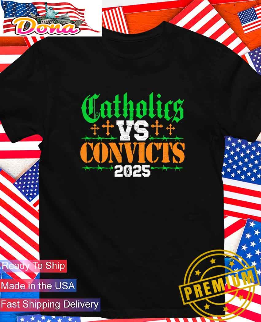 Check More Design Catholics vs Convicts 2025 Shirt High Quality Design. Inspirational designs, illustrations, and graphic elements. Availabe for T-shirt, V-neck T-shirt, Tank Top, Hoodie, Sweatshirt