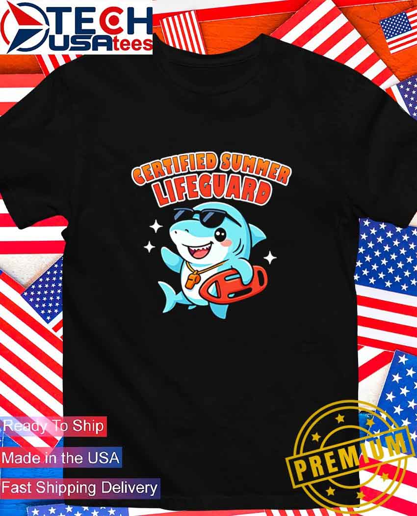 Certified summer lifeguard shark T-Shirt available sizes for youth and adult men and women and availabe for Classic T-shirt, V-neck T-shirt, Tank Top, Hoodie, Sweatshirt.