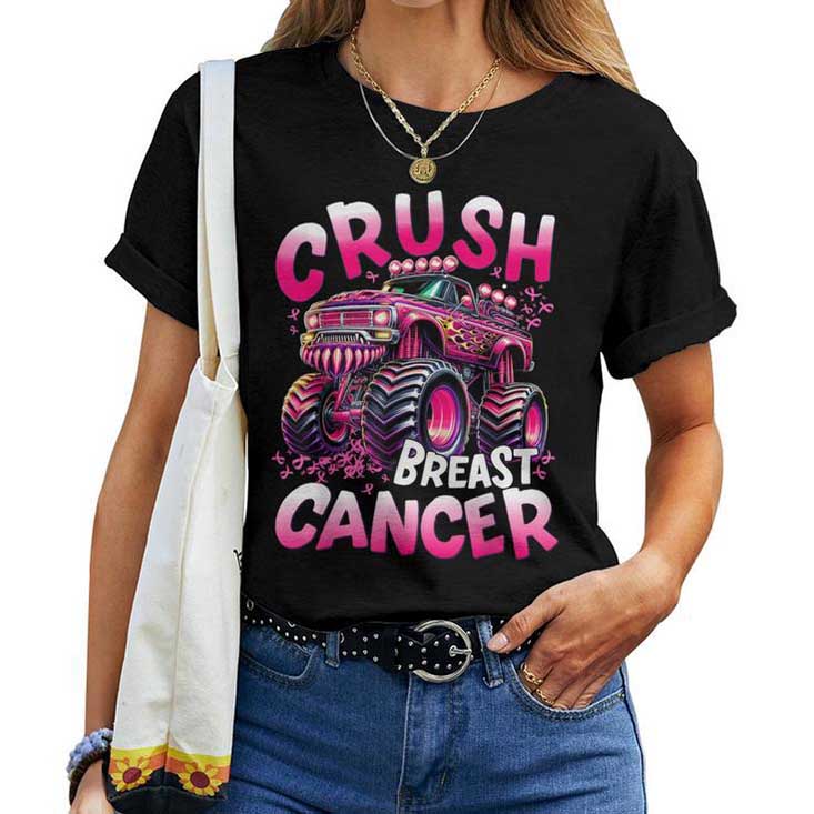Crush Breast Cancer Monster Truck Girls Boys Pink Awareness T-shirt available sizes for toddler and youth and adult men and women and availabe for Classic T-shirt, V-neck T-shirt, Tank Top, Hoodie, Sweatshirt.