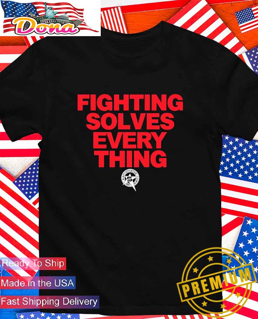 Fighting solves everything T-Shirt available sizes for youth and adult men and women and availabe for Classic T-shirt, V-neck T-shirt, Tank Top, Hoodie, Sweatshirt.