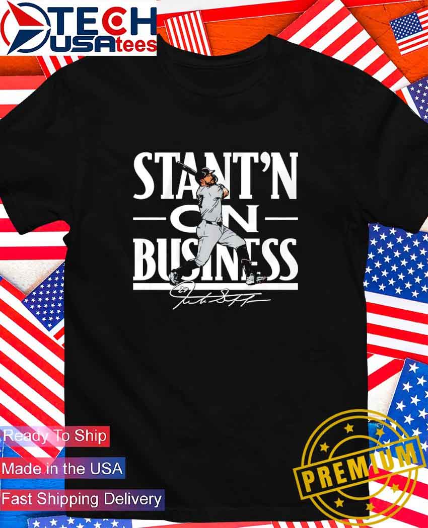 Giancarlo Stanton New York Yankees Stant’n on Business signature T-Shirt available sizes for youth and adult men and women and availabe for Classic T-shirt, V-neck T-shirt, Tank Top, Hoodie, Sweatshirt.