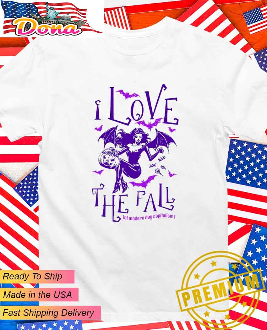 I love the fall of modern day capitalism Halloween T-Shirt available sizes for youth and adult men and women and availabe for Classic T-shirt, V-neck T-shirt, Tank Top, Hoodie, Sweatshirt.