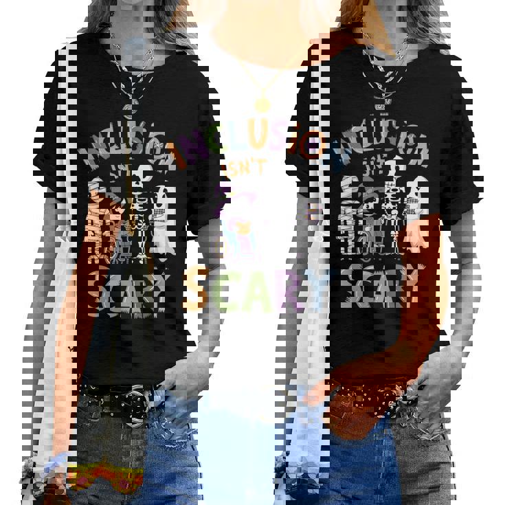 Inclusion Isn’t Scary Halloween Sarcastic Disability T-shirt available sizes for toddler and youth and adult men and women and availabe for Classic T-shirt, V-neck T-shirt, Tank Top, Hoodie, Sweatshirt.