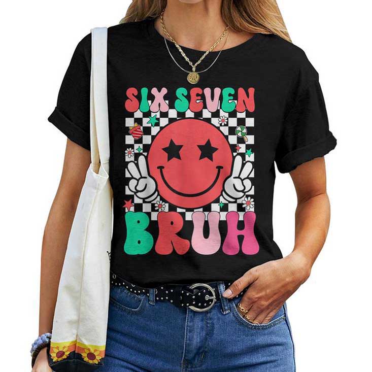 Six Seven Bruh 6 7 Meme Gen Alpha Slang Boy Girl T-shirt available sizes for youth and adult men and women and availabe for Classic T-shirt, V-neck T-shirt, Tank Top, Hoodie, Sweatshirt.