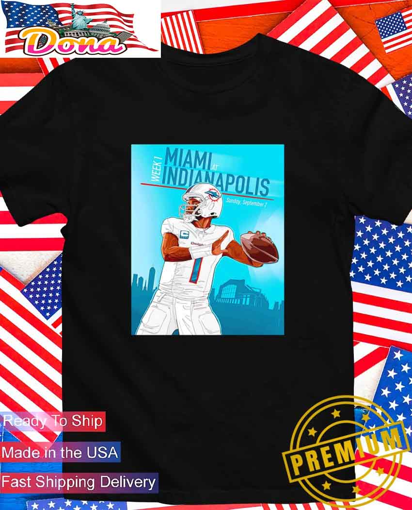 Check More Design Tua Tagovailoa Miami Dolphins Week 1 Miami at Indianapolis Sunday September 7 Shirt High Quality Design. Inspirational designs, illustrations, and graphic elements. Availabe for T-shirt, V-neck T-shirt, Tank Top, Hoodie, Sweatshirt